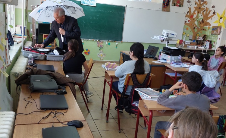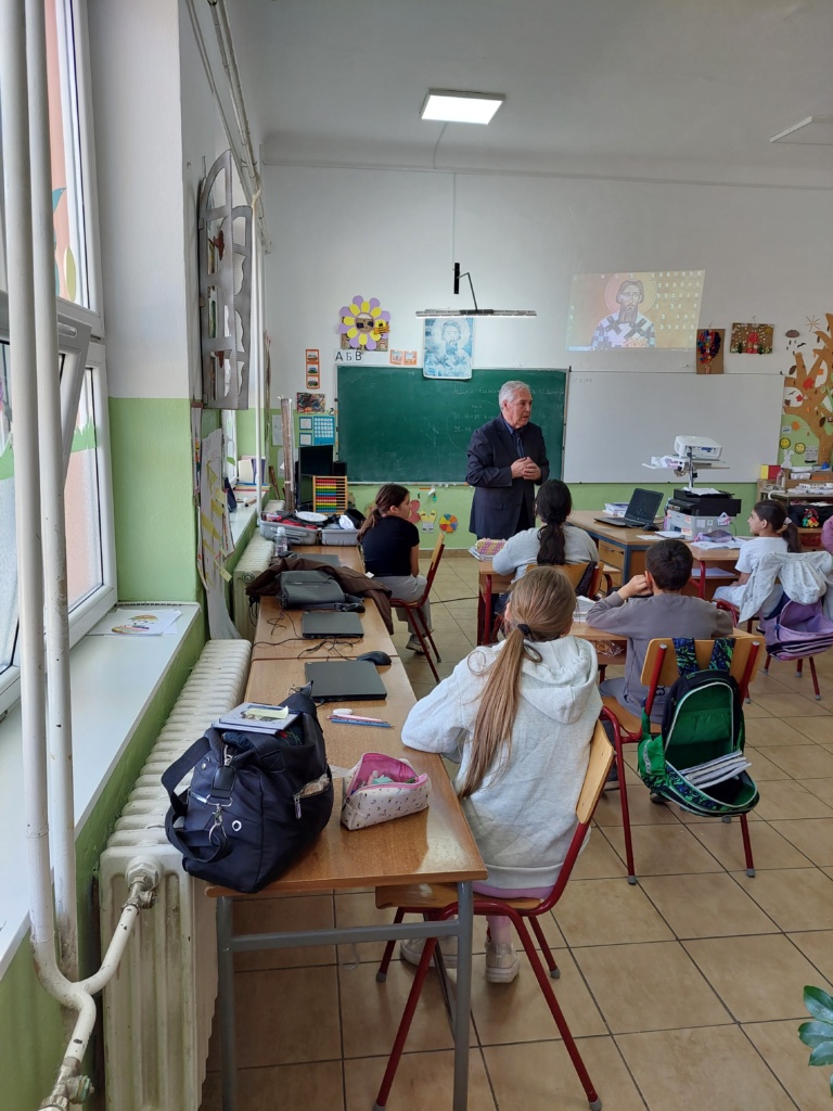 Данас у посети нашој школи био је дечији песник Власта Ценић, који је са децом нижих разреда рецитивао и певао, делић атмосфере можете погледати овде.